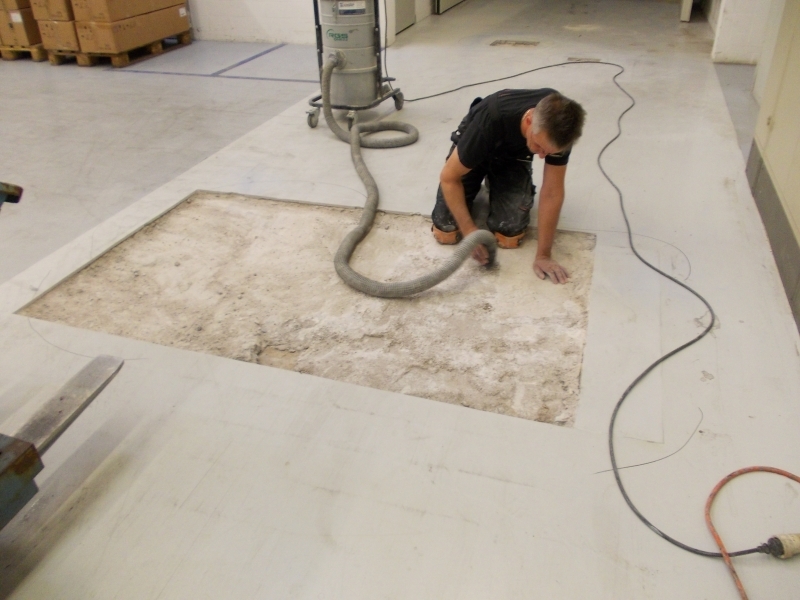 Zwischen dem auf der Oberfläche aufgebrachten Reaktionskunststoff und dem zementgebundenen Untergrund besteht ein Festigkeitsunterschied. Um eine einwandfreie Haftung zu erzielen, muss deshalb für eine möglichst tiefe Verankerung des Reaktionskunststoffes im Porengefüge gesorgt werden. Aus diesem Grund sind Staub, Schmutz, Rückstände von Instandsetzungen, Chemikalienverschmutzung, Farbreste u. Ä. durch geeignete Maßnahmen restlos aus den Poren zu entfernen.
