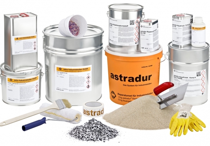 astradur® Stellmittel: Durch Zusatz von Stellmittel wird astradur® Reaktionskunststoff so zähflüssig, dass es auch an beschichteten Flächen mit Gefälle (Kanten, Treppenwangen, abschüssige Flächen) zu keiner Tropfen- oder Tränenbildung kommt. Trotzdem verliert der so eingestellte astradur® Reaktionskunststoff nicht seine guten Verarbeitungseigenschaften.